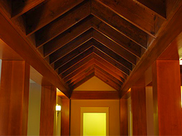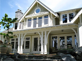 Custom knee brackets (braces) are featured in many ways from the entry to roofline of this ‘oceanfront’ home.