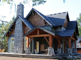 Custom home on acreage with wrap around timberwork porch.